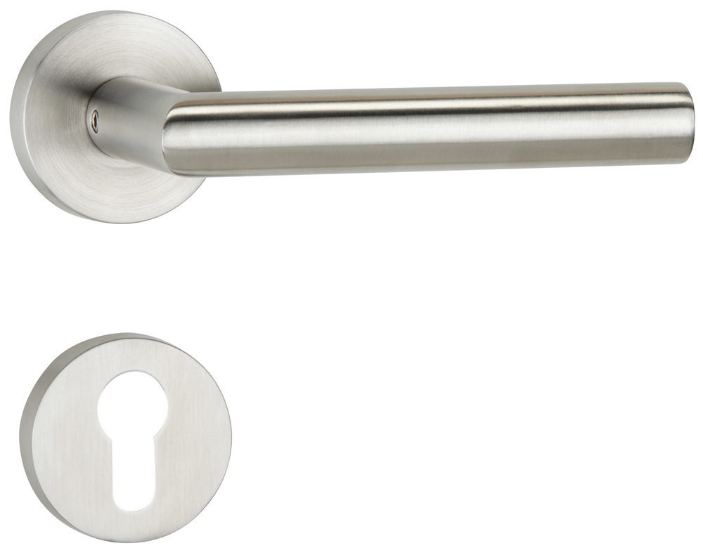 ZT-Wechselgarnitur 1802 BASIC 02 mit Smart-Clip Rosetten 2336 SC / Knopf 3127 Ausf.: PZW, DIN links fest/drehbar, mit Rückholfeder, Tst. 37 - 47 mm Oberfl. 60 (Edelstahl matt)