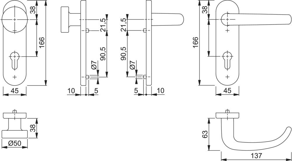 | Durchmesser Türgriff (außen) | 50 mm |
