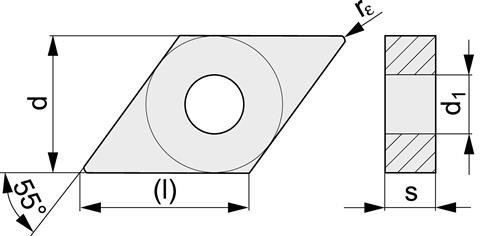zur mittleren Bearbeitung = M Weitere technische Eigenschaften: · d1: 5,16mm · s: 6,35mm · l: 15,5mm · d: 12,7mm · r: 0,8mm · Anwendungsbereich: Bearbeitung mittel · Schnitttiefe max.: 3 mm in Stahl / 2,3 mm in Rostfrei / 3 mm in Guss / - mm in NE-Metalle / - mm in Superlegierungen / - mm in gehärtete Stähle · Schnitttiefe min.: 0,8 mm in Stahl / 0,8 mm in Rostfrei / 0,8 mm in Guss / - mm in NE-Metalle / - mm in Superlegierungen / - mm in gehärtete Stähle · Vorschub min.: 0,15 mm/U in Stahl / 0,15 mm/U in Rostfrei / 0,15 mm/U in Guss / - mm/U in NE-Metalle / - mm/U in Superlegierungen / - mm/U in gehärtete Stähle · Vorschub max.: 0,45 mm/U in Stahl / 0,34 mm/U in Rostfrei / 0,45 mm/U in Guss / - mm/U in NE-Metalle / - mm/U in Superlegierungen / - mm/U in gehärtete Stähle · Vc min.: 125 m/min in Stahl / 75 m/min in Rostfrei / 115 m/min in Guss / - m/min in NE-Metalle / - m/min in Superlegierungen / - m/min in gehärtete Stähle · Vc max.: 195 m/min in Stahl / 115 m/min in Rostfrei / 185 m/min in Guss / - m/min in NE-Metalle / - m/min in Superlegierungen / - m/min in gehärtete Stähle