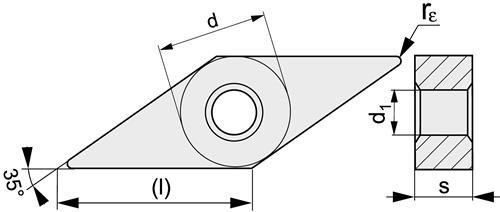 zur Schlichtbearbeitung = F Weitere technische Eigenschaften: · d1: 3,81mm · s: 4,76mm · l: 16,6mm · d: 9,525mm · r: 0,4mm · Anwendungsbereich: Bearbeitung Schlicht · Schnitttiefe max.: 3 mm in Stahl / - mm in Rostfrei / 3 mm in Guss / - mm in NE-Metalle / - mm in Superlegierungen / - mm in gehärtete Stähle · Schnitttiefe min.: 0,5 mm in Stahl / - mm in Rostfrei / 0,5 mm in Guss / - mm in NE-Metalle / - mm in Superlegierungen / - mm in gehärtete Stähle · Vorschub min.: 0,15 mm/U in Stahl / - mm/U in Rostfrei / 0,15 mm/U in Guss / - mm/U in NE-Metalle / - mm/U in Superlegierungen / - mm/U in gehärtete Stähle · Vorschub max.: 0,2 mm/U in Stahl / - mm/U in Rostfrei / 0,2 mm/U in Guss / - mm/U in NE-Metalle / - mm/U in Superlegierungen / - mm/U in gehärtete Stähle · Vc min.: 180 m/min in Stahl / - m/min in Rostfrei / 170 m/min in Guss / - m/min in NE-Metalle / - m/min in Superlegierungen / - m/min in gehärtete Stähle · Vc max.: 225 m/min in Stahl / - m/min in Rostfrei / 210 m/min in Guss / - m/min in NE-Metalle / - m/min in Superlegierungen / - m/min in gehärtete Stähle