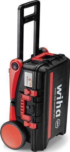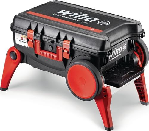 umfangreiches, praxisorientiertes Sortiment im robustem Schutzkoffer · integrierte Gasdruckdämpfer halten den bestückten Deckel in der gewünschten Position · Koffer staub- und wasserdicht mit Druckausgleichsventil · stapelbar, rollbar · mit integriertem Fahrgestell · ausklappbare Beine für eine erhöhte Entnahmeposition und einen stabilen rutschsicheren Tritt für hochgelegene Arbeiten · große Räder für komfortables rollen auf Treppenstufen und unwegsamen Gelände · V-förmige Kerbung im Deckel als Absägehilfe Weitere technische Eigenschaften: · Material: Polypropylen · Höhe: 680mm · Tiefe: 336mm · Gewicht: 17,6kg · Breite: 497mm