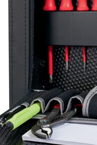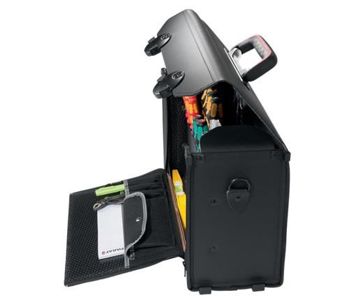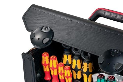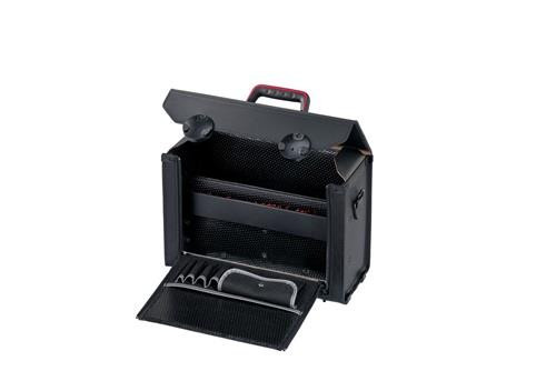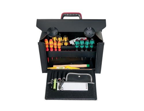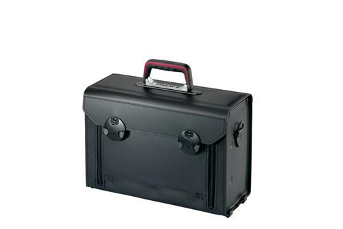 aus Rindsleder · Vorderwand aufklappbar · mit 4 Separationen · 1 Tasche für Kleinteile · Bodenschale aus Stahlblech verzinkt · Klemmfach · fixierte Mittelwand mit flexiblem Stecksystem CP-7 (ermöglicht die individuelle Bestückung mit Werkzeugen bis 15 mm Ø · Rückwand mit flexiblem Stecksystem CP-7 (ermöglicht die individuelle Bestückung mit Werkzeugen bis 26 mm Ø · 2 abschließbare Rasterschlösser · CP-7 Stecksystem: Mit diesem System kann der Werkzeugkoffer individuell bestückt werden · die Werkzeuge bleiben immer an ihrem Platz, selbst bei Öffnung kopfüber · geeignet für die Aufnahme von Werkzeugen mit einer Stärke bis max. 26 mm