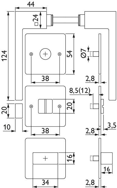 | Befestigungsart Drückerrosette (außen) | verdeckt verschraubt |