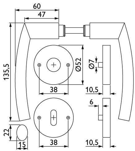 | Befestigungsart Drückerrosette (außen) | verdeckt verschraubt |