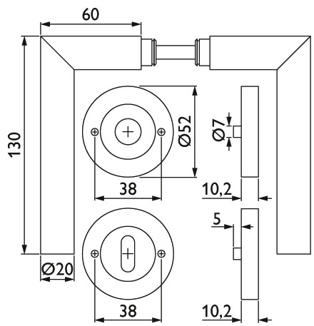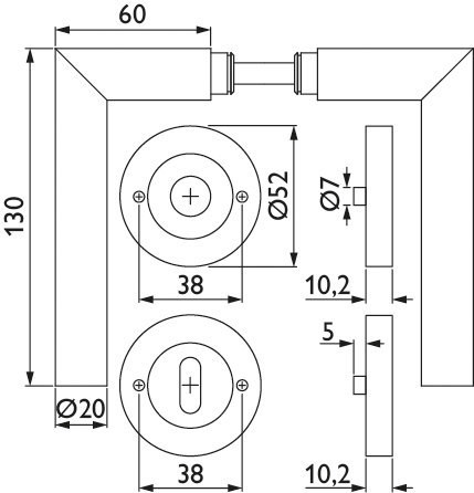 | Befestigungsart Drückerrosette (außen) | verdeckt verschraubt |