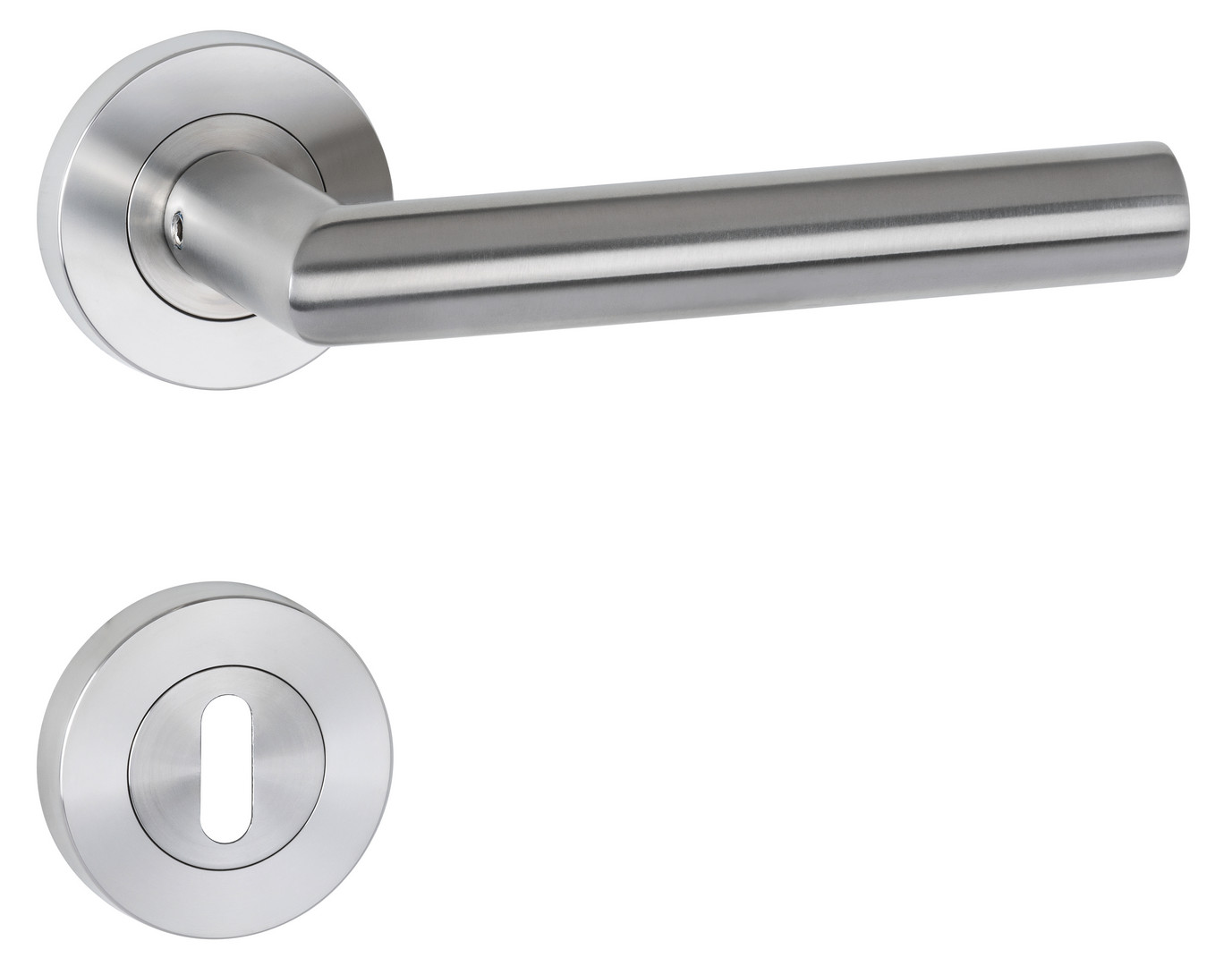 ZT-Drückergarnitur 1802 BASIC 02 mit Schraubrosette 2061 Ausf.: BB fest/drehbar, mit Rückholfeder, Tst. 38 - 45 mm Oberfl. 60 (Edelstahl matt)