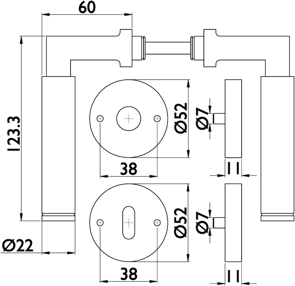 | Befestigungsart Drückerrosette (außen) | verdeckt verschraubt |