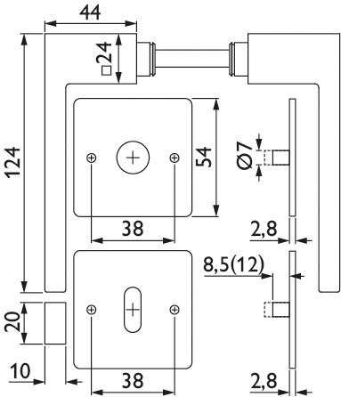 | Befestigungsart Drückerrosette (außen) | verdeckt verschraubt |