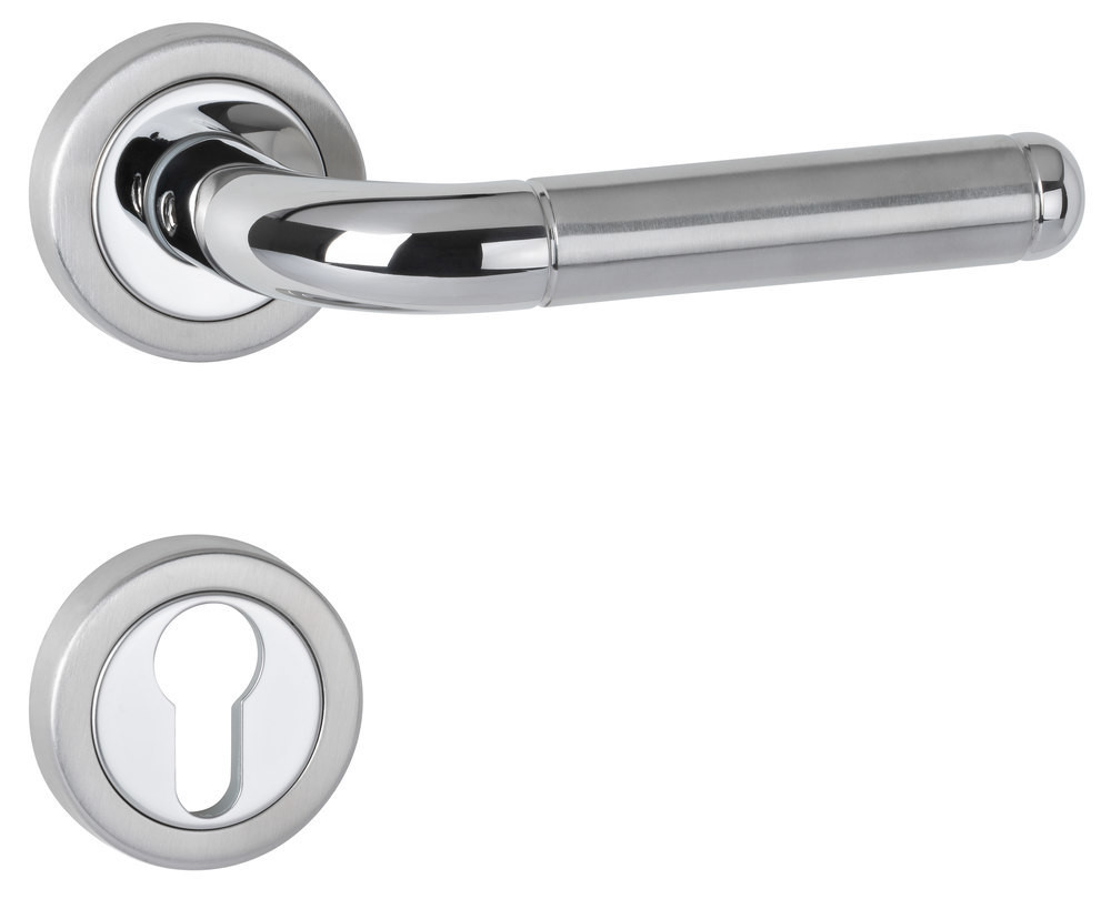 ZT-Drückergarnitur 1110 ER CLUB mit Rosetten 2031 Ausf.: PZ mit Rückholfeder, Türstärke 38 - 42 mm Oberfl. 63 (Edelstahl poliert/Edelstahl matt)