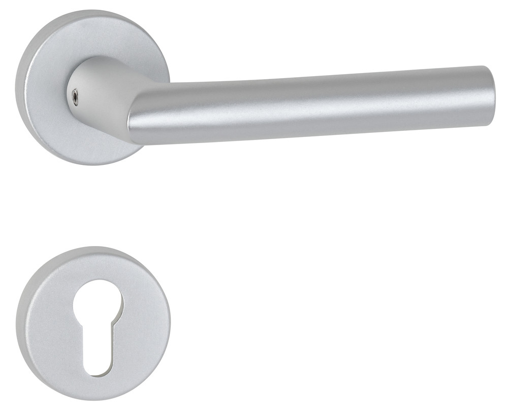 ZT-Drückergarnitur 1902 AL BASIC 02 mit Rosetten 2057 Ausf.: PZ mit Rückholfeder Oberfl. F1 (Silberfarben eloxiert)