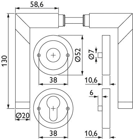 | Befestigungsart Drückerrosette (außen) | verdeckt verschraubt |