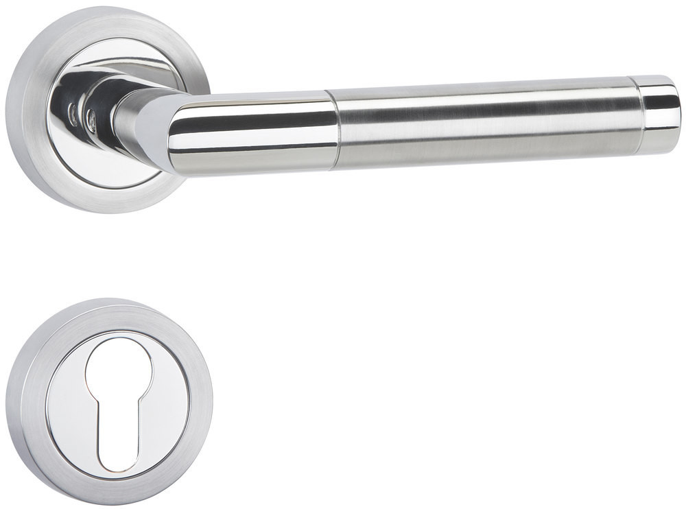 ZT-Drückergarnitur 1114 ER SPACE ER mit Smart-Clip Rosetten 2331 SC & RHF Ausf.: PZ fest/drehbar, mit Rückholfeder, Tst. 37 - 47 mm Oberfl. 63 (Edelstahl poliert/Edelstahl matt)