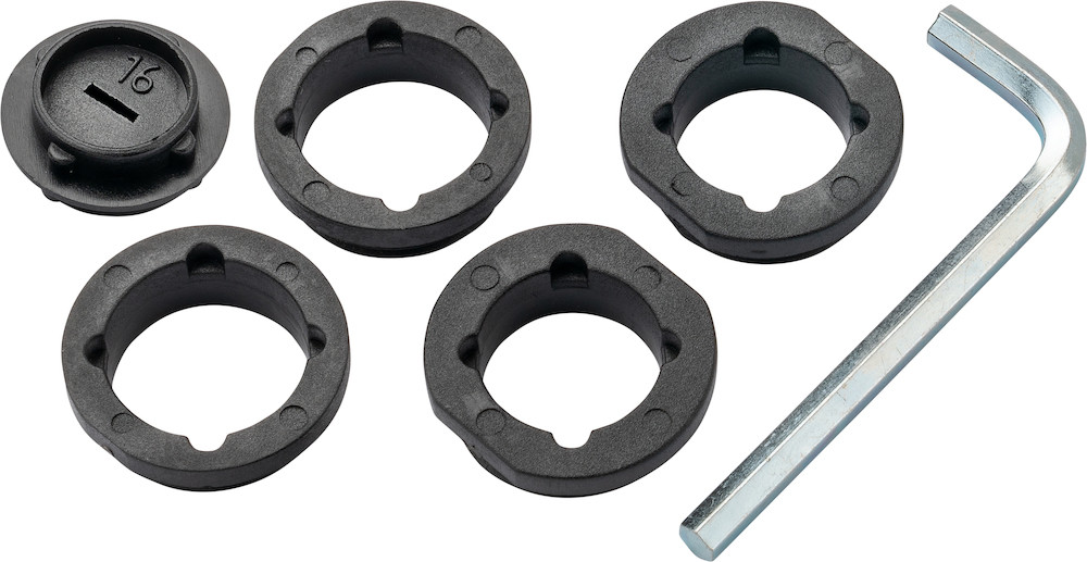 Zubehörbeutel für Glastürschloss für Serie 6010..20..30..50..80..90/6140 2 x Drückerführung Innendurchmesser 18 mm 2 x Drückerführung Innendurchmesser 16 mm, inkl. Montagewerkzeug + Innensechsk. Schlüssel 4 mm