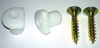 gelbrot Montageset für Innen-Drückerhalbgarnituren enthält 2 Kunststoff Spreiznocken und 2 Senkschrauben 5 x 25 mm.